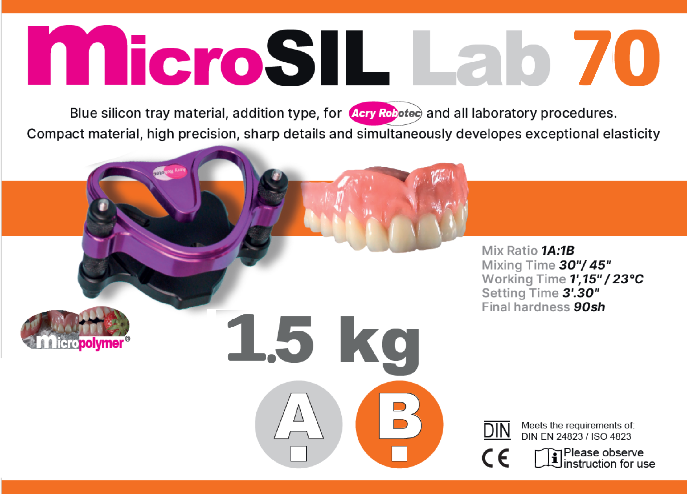 Σιλικόνη νανοτεχνολογίας Shore 70 microSIL Lab 70 – 1,5+1,5 κιλά από την Micropolymer Dental Italy